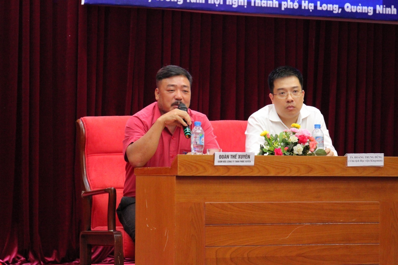 Hội thảo đang tiếp tục đến với phần tọa đàm – hỏi đáp với sự chủ trì của TS. Hoàng Trung Dũng – Chủ tịch Tổ chức Giáo dục Kingsman và Ông Đoàn Thế Xuyên – GĐ Công ty TNHH Phúc Xuyên.