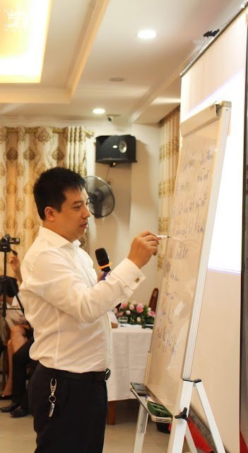Chị Vũ Thu Hiền đến từ Quảng Ninh chia sẻ “Tôi đã tham gia rất nhiều khóa đào tạo bán hàng. Mỗi khóa học giảng viên sẽ có phương thức truyền đạt khác nhau. Nhưng trong khóa học của thầy Dũng tôi đã bị lôi cuốn bởi lối thuyết giảng gần gũi gắn với ngành nghề của chúng tôi. Chúng tôi cũng hy vọng sẽ có cơ hội lắng nghe thêm nhiều tình huống xử lý trong ngành dược từ thầy”.