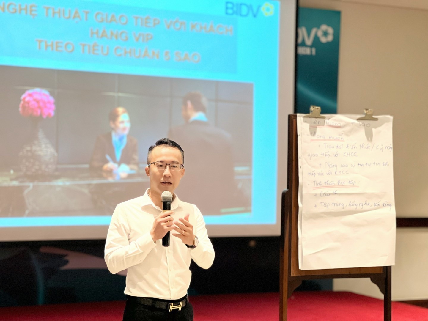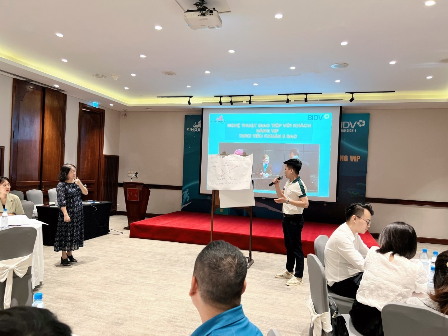 Chương trình Đào tạo “Nghệ thuật giao tiếp với khách hàng VIP theo tiêu chuẩn 5 sao” bao gồm một loạt các hoạt động chuyên sâu, tùy chỉnh và thiết kế để đáp ứng nhu cầu của khóa học. Mang đến một môi trường học tập hào hứng khi các học viên có thể tương tác trực tiếp với các giảng viên. Chương trình đào tạo đã trang bị cho các cán bộ của BIDV Chi nhánh Sở giao dịch 1 những kiến thức cần thiết trong việc phát triển mối quan hệ và chăm sóc khách hàng VIP.