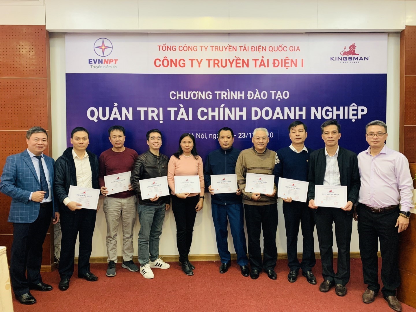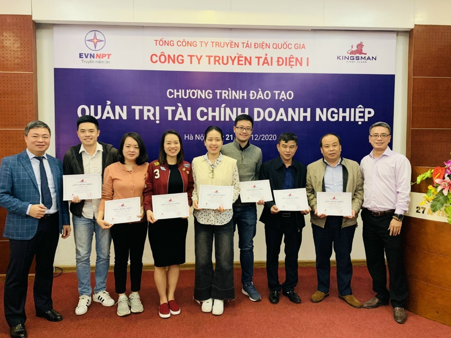 Trong 3 ngày (21/12/2020 – 23/12/2020) tại Hà Nội, Công ty Truyền tải điện 1 (PTC1) phối hợp với Công ty Cổ phần Tư vấn và Đào tạo Kingsman tổ chức Khóa đào tạo Quản trị tài chính doanh nghiệp. Đây là kế hoạch đào tạo trong Đề án nâng cao năng lực các Công ty Truyền tải điện của Hội đồng Thành viên Tổng công ty Truyền tải điện Quốc gia tại Quyết định số 57/QĐ-HĐTV ngày 18/03/200.