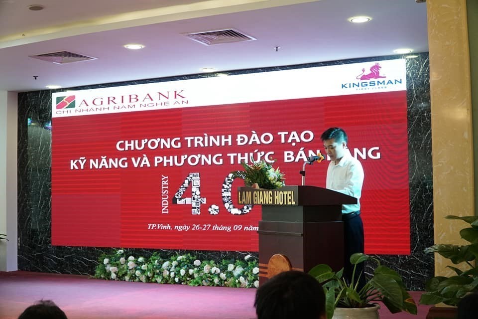 Trong hai ngày 26 và 27/09/2020, thực hiện theo chương trình đào tạo năm 2020, Tổ chức Giáo dục Kingsman đã tham gia đào tạo cho Agribank Chi nhánh Nam Nghệ An chương trình “Tư duy bán hàng và phương thức bán hàng 4.0” cho toàn thể cán bộ dưới sự giảng dạy trực tiếp của TS. Hoàng Trung Dũng.
