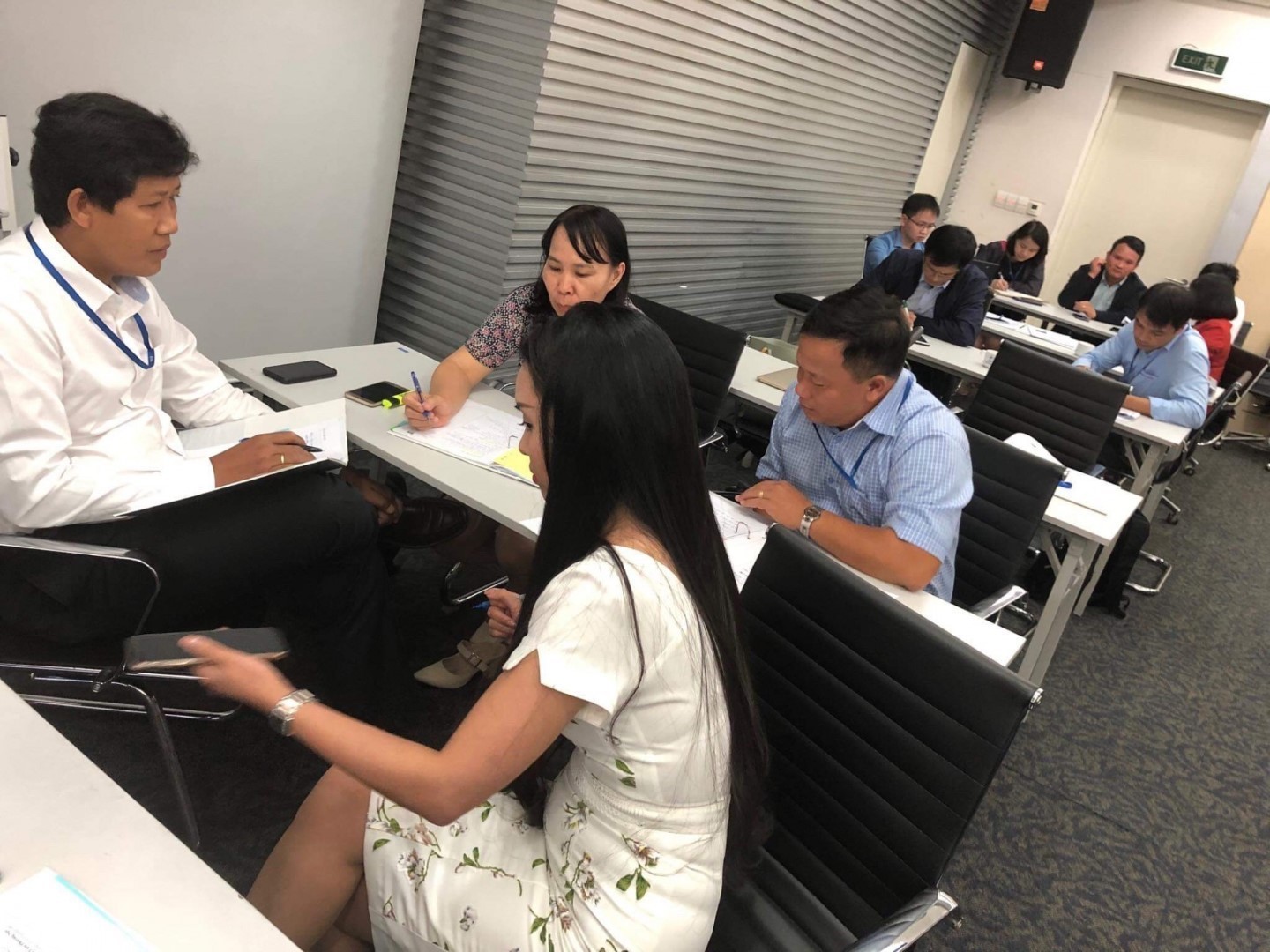 Trong khóa đào tạo, các học viên không chỉ được học về các lý thuyết, mà còn được thực hành và bàn luận theo các nhóm để cùng tìm ra các giải pháp cho các vướng mắc còn tồn đọng.