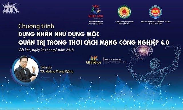 Vừa qua, Học viện Kingsman đã tham gia chương trình Dụng nhân như dụng mộc – Quản trị trong thời cách mạng công nghiệp 4.0 tại Việt Yên, Bắc Giang với sự giảng dạy trực tiếp từ TS. Hoàng Trung Dũng.