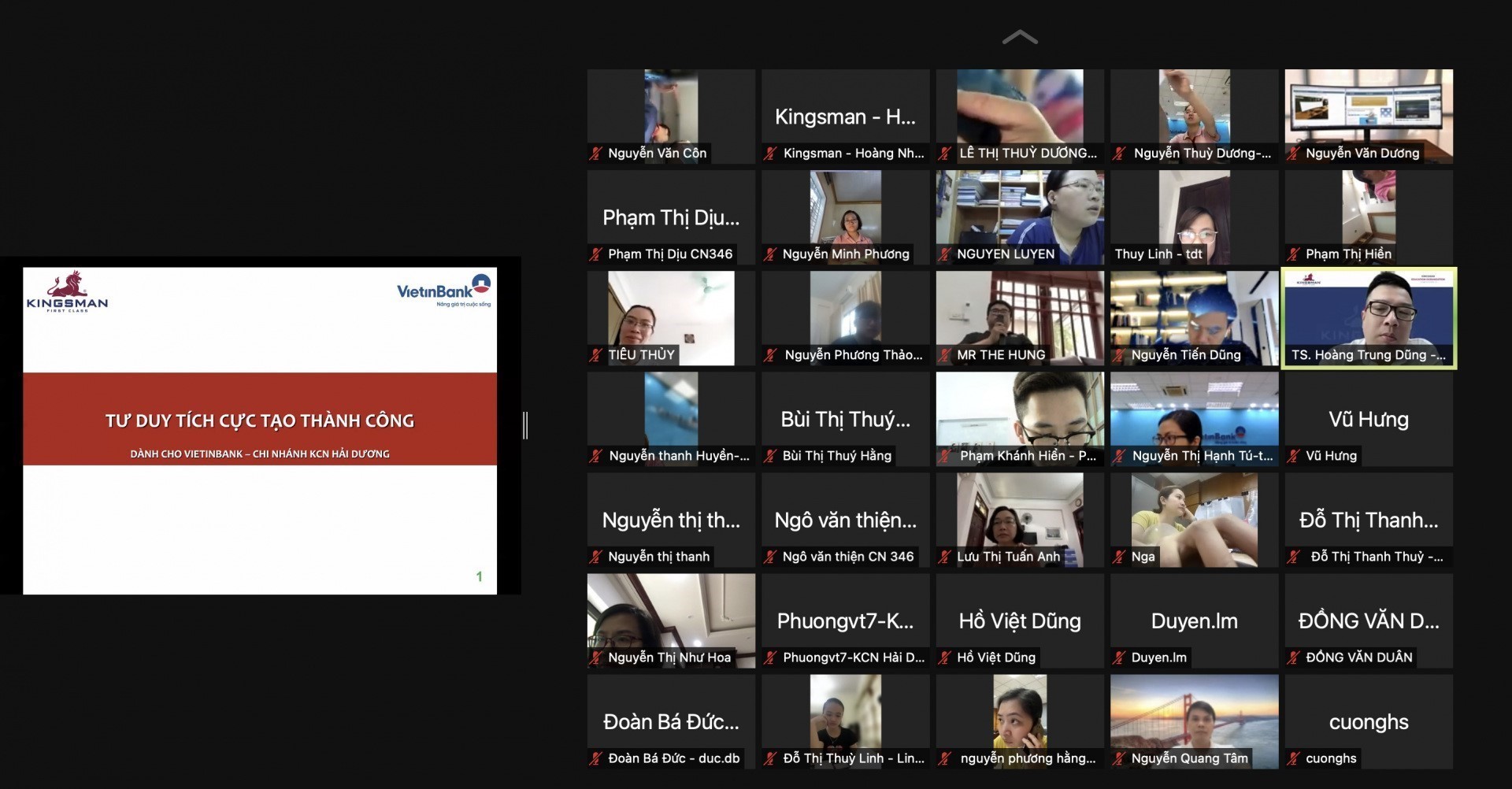 Khóa học “Tư duy Tích cực tạo thành công” do Kingsman tổ chức dành cho Vietinbank Chi nhánh KCN Hải Dương và Trảng Bàng sẽ giúp các học viên đối phó dễ dàng hơn với những vấn đề hàng ngày của cuộc sống. Mang đến sự lạc quan vào cuộc sống và làm cho cuộc sống, công việc dễ dàng hơn để tránh những lo lắng và suy nghĩ tiêu cực.