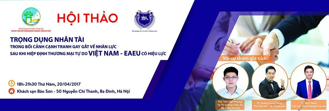 Với mong muốn đem đến cách nhìn tổng quan về nội dung liên quan đến nguồn lực trong các hiệp định thương mại tự do mà Việt Nam vừa ký kết, cũng như yêu cầu thực tiễn cần thay đổi nhận thức và hành động để quản trị nhân sự hiệu quả hơn. Trung tâm Hỗ trợ doanh nghiệp Vừa và Nhỏ – Sở kế hoạch và Đầu tư Hà Nội phối hợp ng Học viện Chiến lược và Nhân sự Kingsman cùng tổ chức hội thảo.
