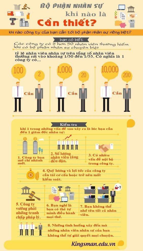 Tỷ lệ nhân viên nhân sự trên tổng số nhân viên thường rơi vào khoảng 1/50 đến 1/55. Có nghĩa là một công ty có 100 nhân viên cần 2 bộ phận nhân sự, công ty có 1000 nhân viên cần 20 bộ phận nhân sự, công ty có 10000 nhân viên cần 200 bộ phận nhân sự?