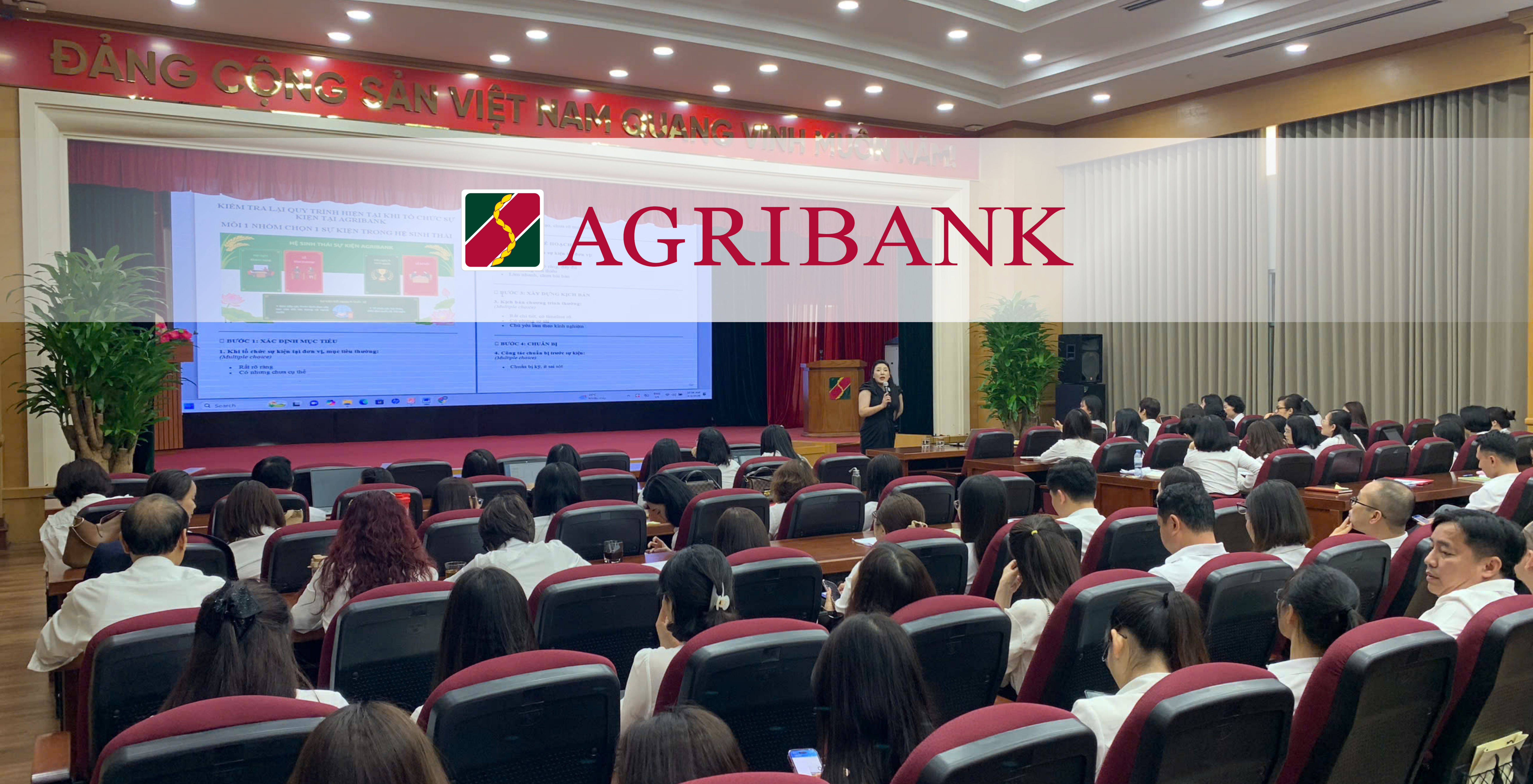 Agribank là một ngân hàng lớn, thường xuyên tổ chức và tham gia các sự kiện quan trọng như: hội nghị khách hàng, lễ ký kết hợp tác, hay các chương trình cộng đồng. Hiện nay, công việc của đội ngũ tổ chức sự kiện và lễ tân không chỉ đơn giản là lo việc hậu cần như chuẩn bị hoa, nước, hay sắp xếp chỗ ngồi.