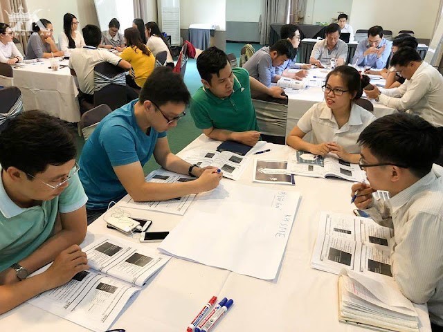 Các học viên tích cực thảo luận bài tập nhóm từ tình huống do giảng viên đưa ra: