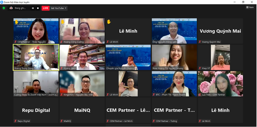 Tối qua, Công ty Cổ phần Tư vấn và Đạo tạo Kingsman, Công ty TNHH Rosa Bonita, FPT Telecom, Công ty TNHH Cempartner đồng hành tổ chức toạ đàm online thu hút hơn 5000 người tham gia trực tuyến trên nền tảng Zoom Webinar và Youtube.